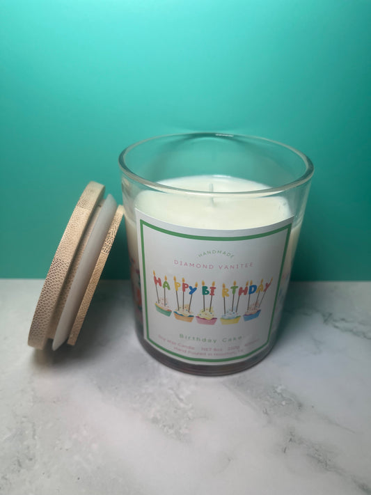 Happy Birthday Candle 8oz Soy Wax Never leave the candle unattended, always handle fire with...